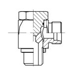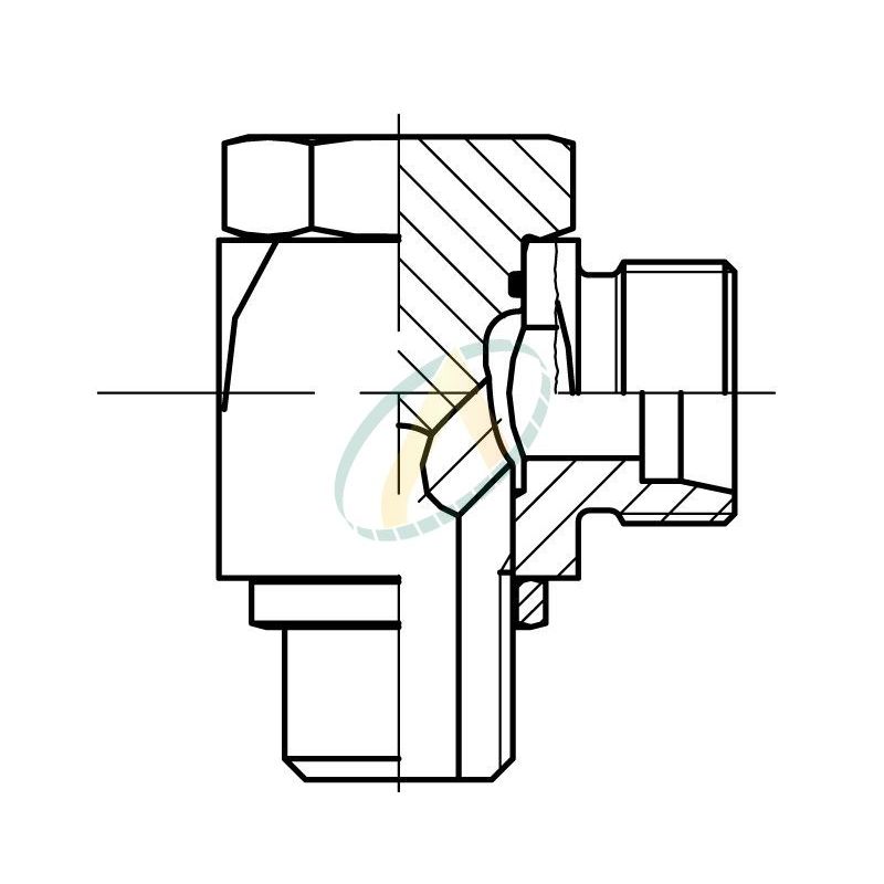 Raccord hydraulique orientable, avec un côté mâle pour connecter un flexible avec embout écrou tournant et de l'autre côté pour se visser dans un bloc taraudé en .