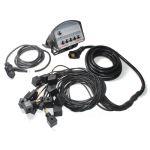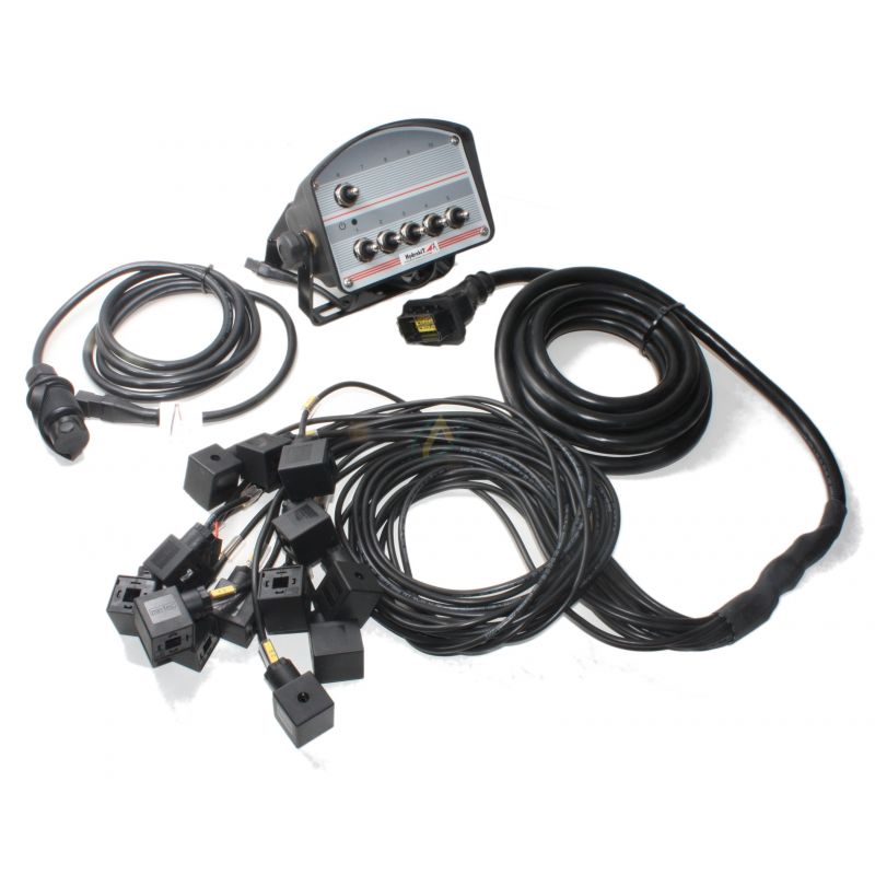 Le boîtier est équipé d'un câble d'alimentation de 2 mètres avec prise à 3 plots et d'un faisceau équipé de prises Hirschmann de 5 mètres pour la connexion aux bobines. Si besoin, nous proposons en accessoire complémentaire une rallonge pour le faisceau de prises.
