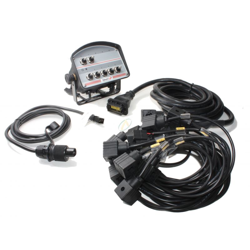 Le boîtier est équipé d'un câble d'alimentation de 2 mètres avec prise à 3 plots et d'un faisceau équipé de prises Hirschmann de 5 mètres pour la connexion aux bobines. Si besoin, nous proposons en accessoire complémentaire une rallonge pour le faisceau de prises.