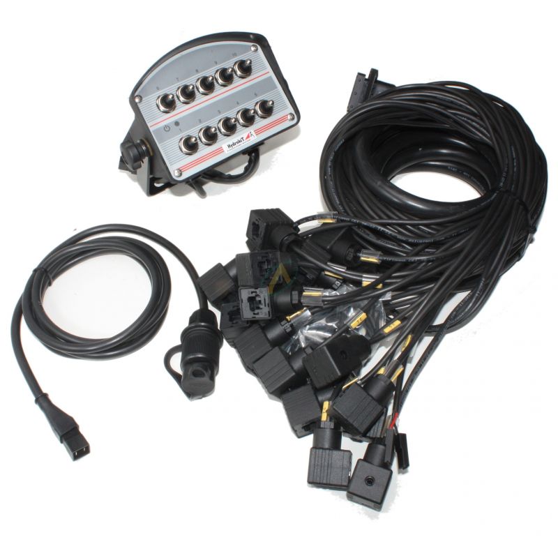 Le boîtier est équipé d'un câble d'alimentation de 2 mètres avec prise à 3 plots et d'un faisceau équipé de prises Hirschmann de 5 mètres pour la connexion aux bobines. Si besoin, nous proposons en accessoire complémentaire une rallonge pour le faisceau de prises.