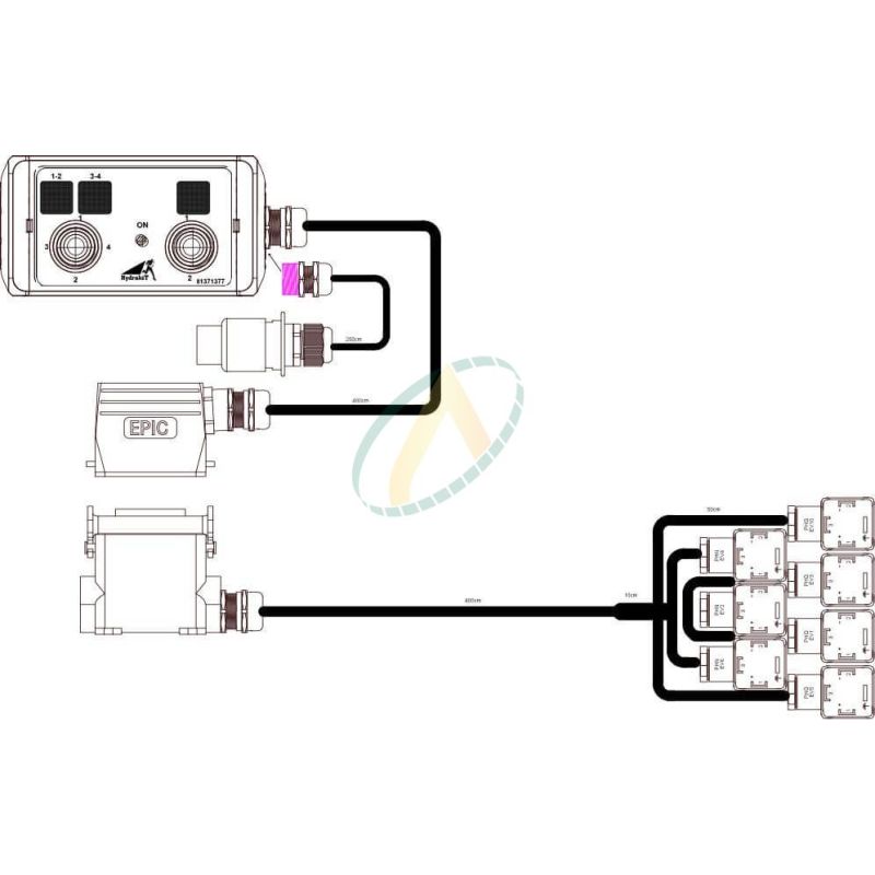 - Un câble de commande de 4 mètres + 4 mètres équipé de 7 prises Hirschmann