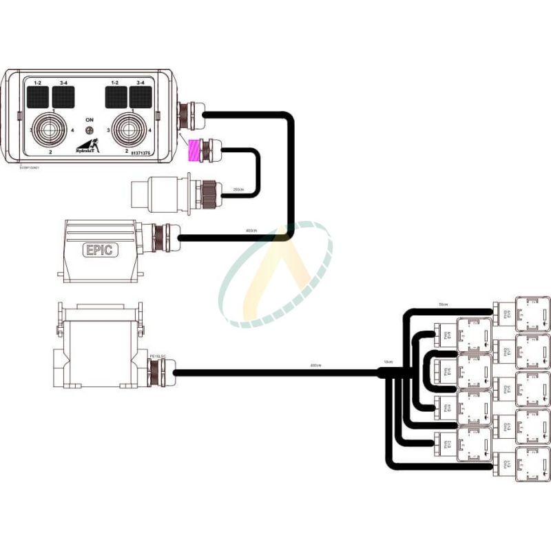 - Un câble de commande de 4 mètres + 4 mètres équipé de 9 prises Hirschmann