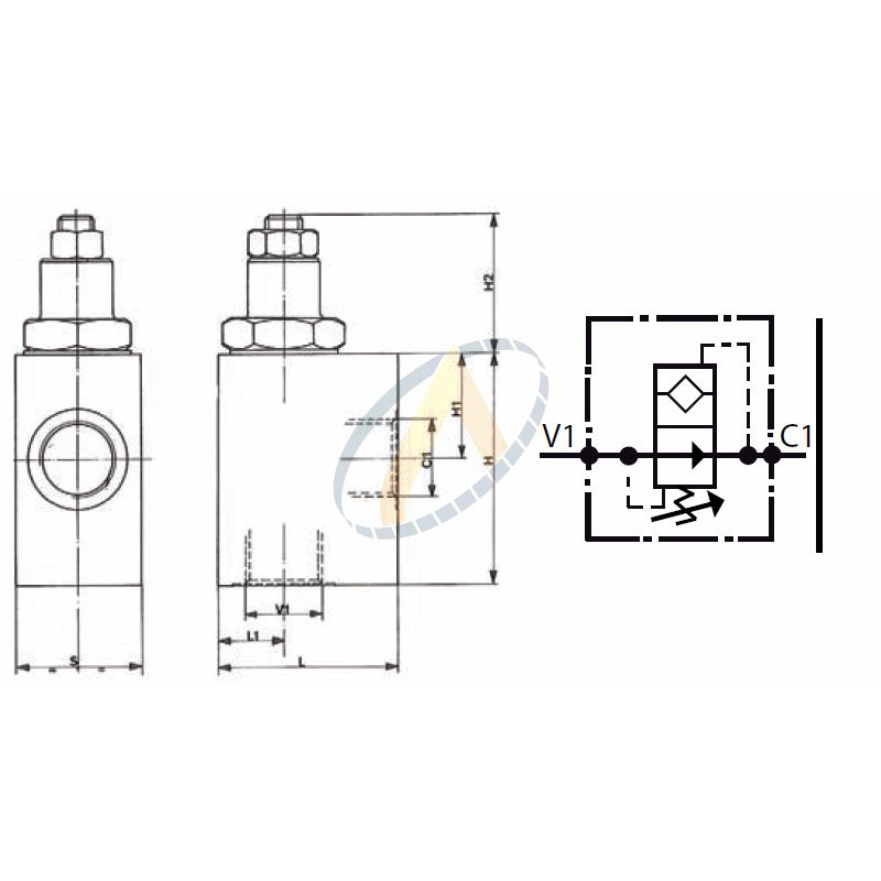 Vous pouvez voir les caractéristiques de votre valve de blocage réglable avec schéma ci-dessous.