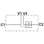 Schéma hydraulique clapet anti-retour simple piloté (C1 C2 : Vérin - V1 V2 : Distributeur) :