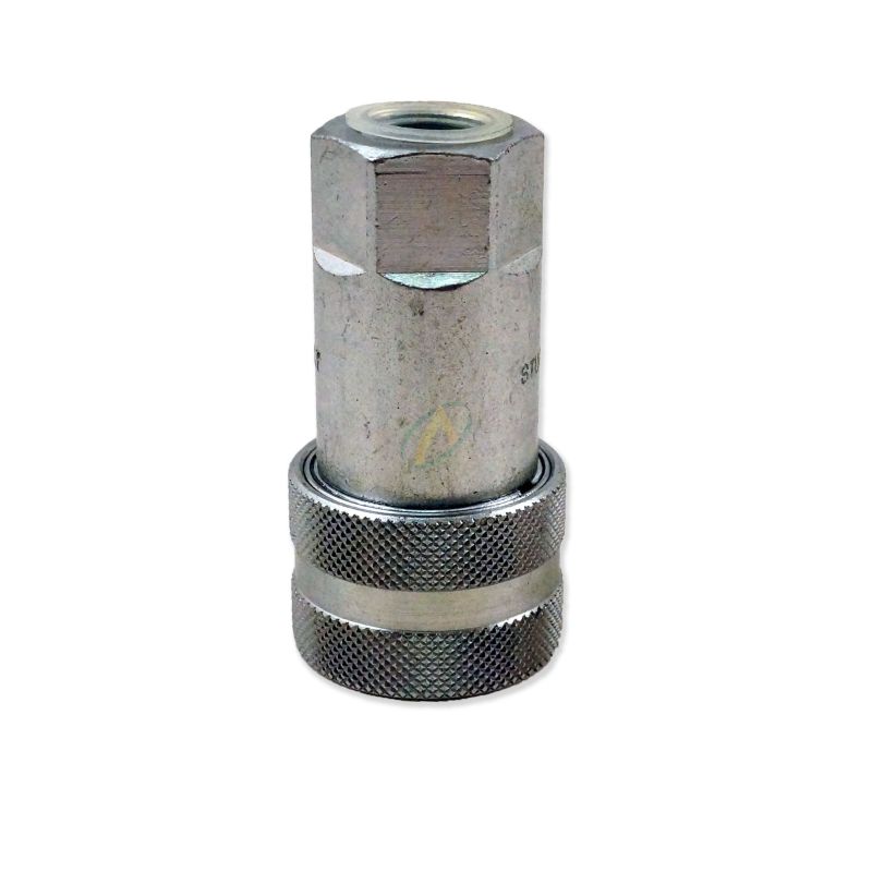 Coupleur hydraulique à clapet, de taille 1/8" à 1". Utilisé en industrie, chimie, pétrolière et en agricole sur les petits tracteurs.