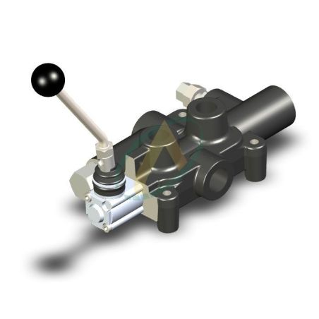 Ce distributeur dispose d'un crantage sur la montée de la tige, il ne sera alors pas nécessaire de garder la fonction active pour que celle-ci reste en position montée (la pression pour le décranter est réglable).