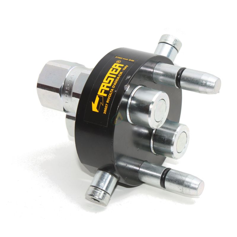 Le multicoupleur Faster P208 femelle permet la connexion rapide, facile et sans risque d'erreur de 2 lignes hydrauliques en 1/2 BSPP, simultanément.