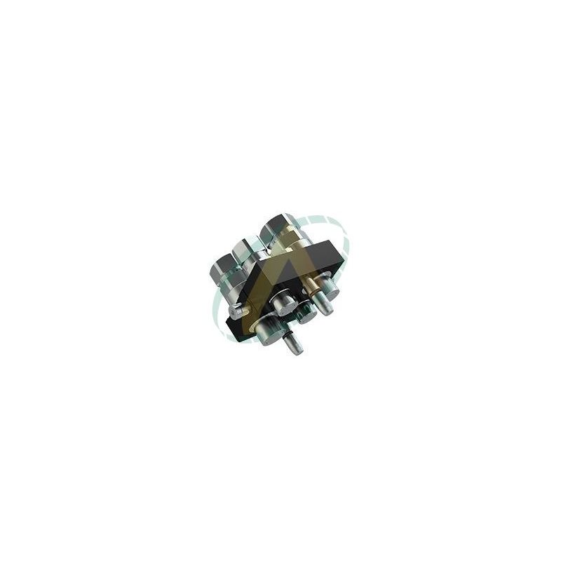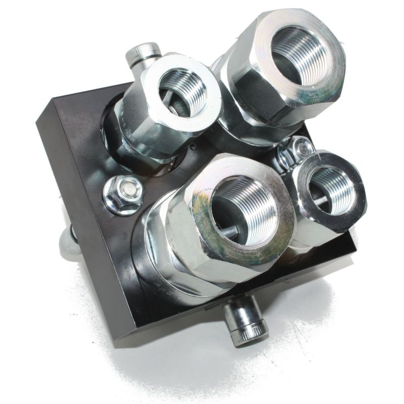 Ce multicoupleur Mach 4 mâle à 4 prises permet la connexion simultanée de 4 lignes hydrauliques sous pression.