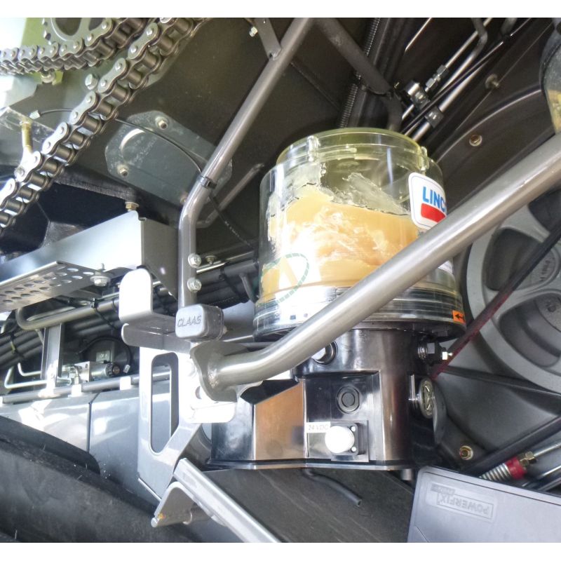 Cet ensemble vous permettra de graisser 27 points. Vous pourrez graisser la poulie batteur, le pallier oscillant, palier de pont, le pivot haut, les rotules, le pivot bas et l'éparpilleur. Il vous sera livré avec une pompe a graisse Lincoln 12V avec réservoir de 2L.