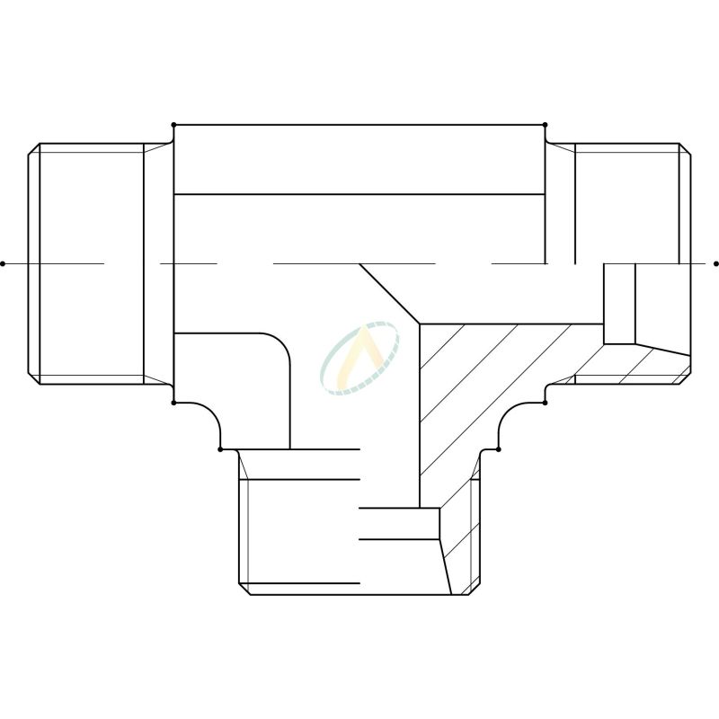 Raccord hydraulique en té, avec trois côté mâle 10L DIN pour connecter un flexible avec embout écrou tournant ou un tube.