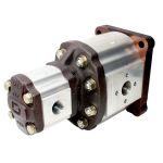 Cette pompe double possède un arbre cannelé SAE B en 13 dents avec une flasque Italienne en losange.