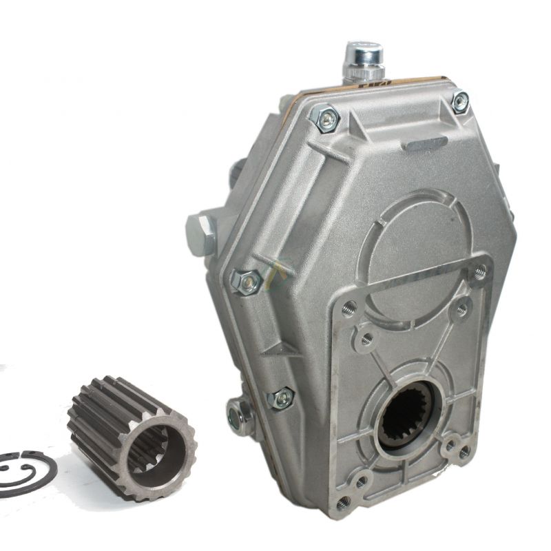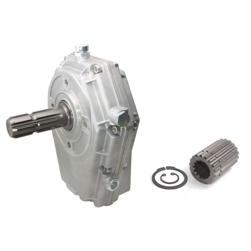 Ce multiplicateur est équipé d'un arbre PTO z6 (prise de force agricole) et d'un manchon cannelé de norme SAE B.